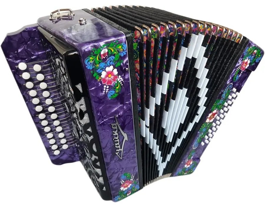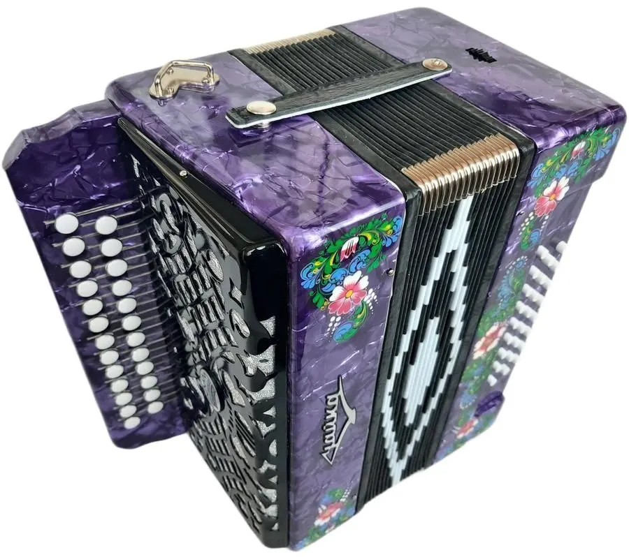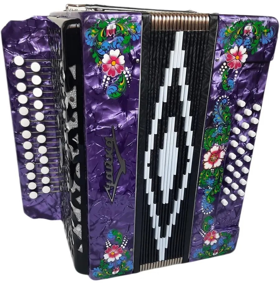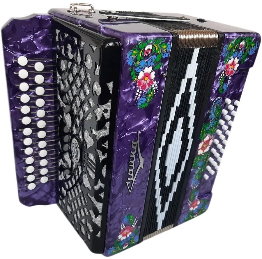 - Клавиатуры: правая – двухрядная, пуговичная (25 клавиш), левая – трехрядная, кнопочная (25 кнопок).