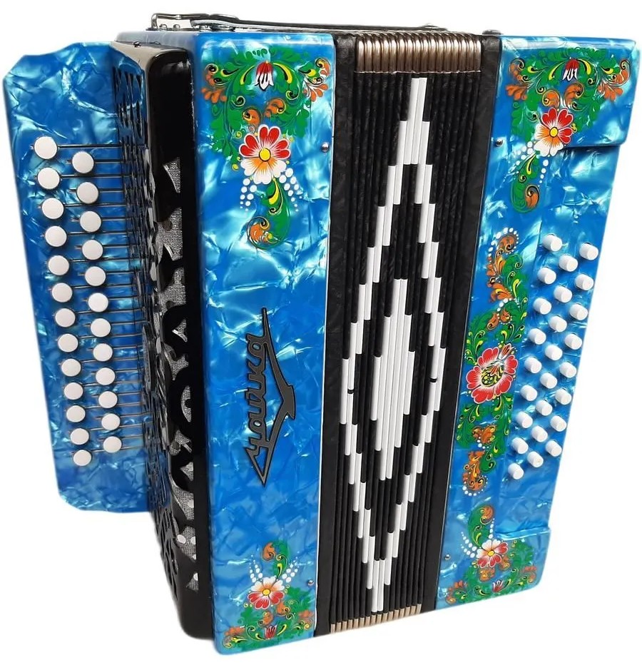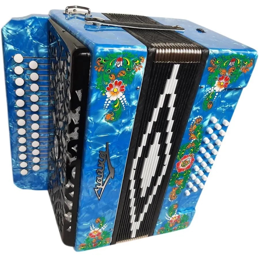 - Клавиатуры: правая – двухрядная, пуговичная (25 клавиш), левая – трехрядная, кнопочная (25 кнопок).