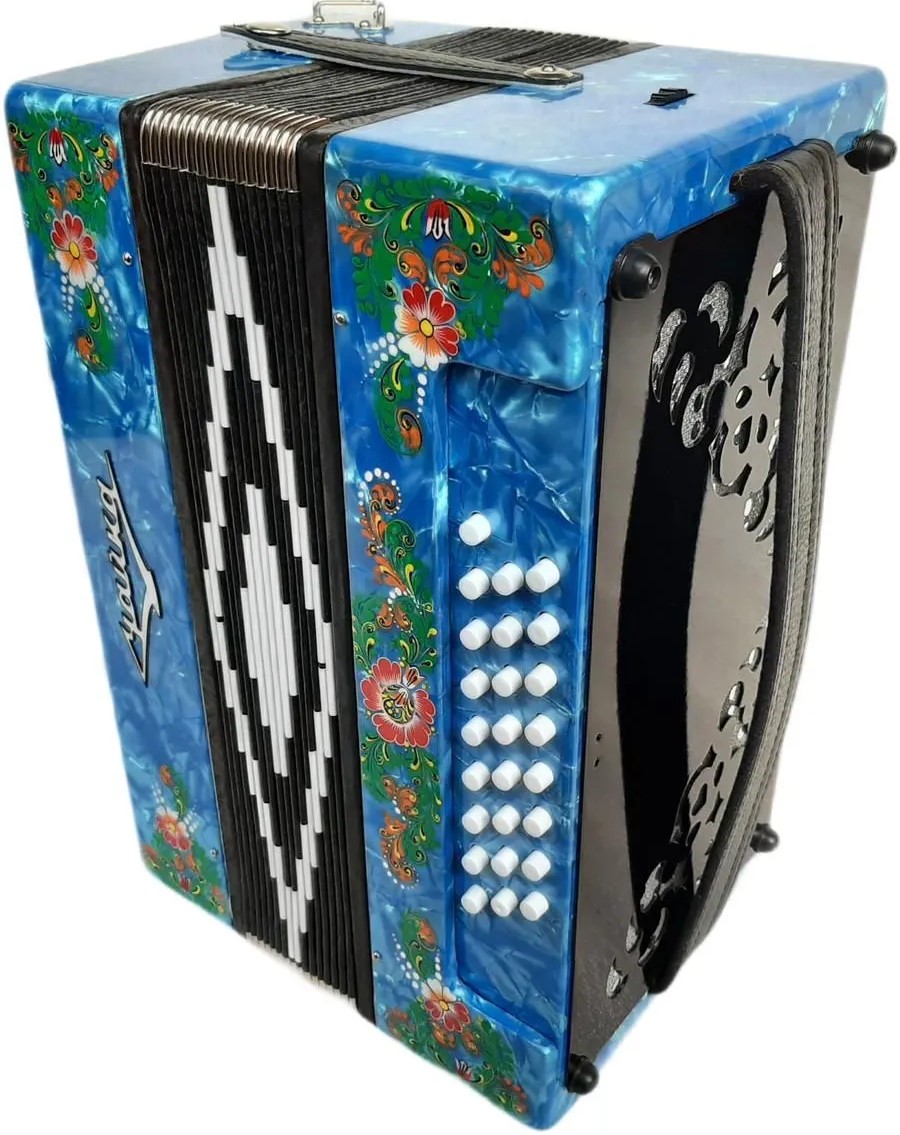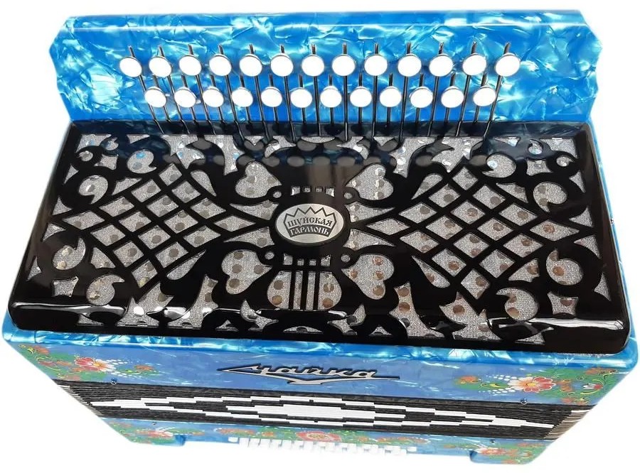 - Голосовые планки - алюминиевые кусковые, голоса стальные, настройка - в розлив (аккордеонное звучание).